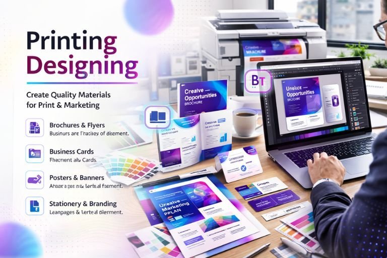 In today’s competitive business world, Printing Designing is a crucial skill for creating professional brochures, banners, flyers, and other print materials. Unlike digital designs, print designs require attention to color accuracy, layout precision, and material compatibility.